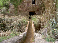 En este momento se abría el cubo, el agua salía por una canaleta que chocaba con la muela de madera, la hacía girar y el palo hacía girar la piedra volandera. Entonces se echaba el trigo en la tolva y comenzaba a molerse el trigo.