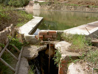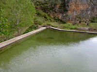 El agua procedía de la Fuente del Río que mediante largas acequias heredadas de los árabes, llegaban a la balsa. Esta acequia debía ser mantenida en condiciones por el molinero y por los regantes ya que el agua que se utilizaba para moler era la misma que se tenía que usar para regar; por este motivo había que moler en horas en que se pudiera regar.