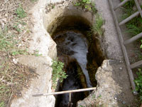 El cubo de 1,20 m de diámetro y 6 m de profundidad en el que se almacenaba una cantidad tal de agua que una vez canalizada produzca el caudal suficiente para mover la muela de madera.