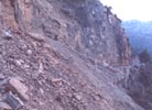 Se componía de dos pequeñas salas, una primera donde cabiamos cuatro personas y una altura de metro y medio y una segunda algo mayor a continuación de la anterior algo mayor con dos galerías, si se le puede llamar así a unos túneles donde apenas a gatas se podía avanzar. La primera galería tomaba la dirección interior de la montaña y estaban cegada a apenas cuatro metros de la sala principal, la segunda galería, paralela al cortado barrenada que caía sobre la carretera, era bastante más larga, pero su mal estado, parejo al del resto de la pared que se derrumbo y dejo incomunicado al pueblo, no daba garantías de poder entrar.