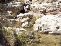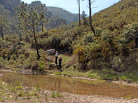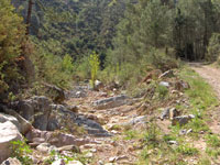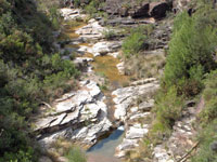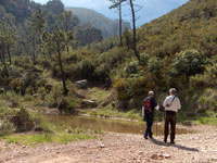Las montañas, aún con pelo corto, conservan a ratos vestigios del desastroso incendio de 1994, quizás como testimonio muerto de la desgracia, quizás como indicador de algo que no debiera volver a pasar. Pero ya es el color verde el que predomina en el paisaje, y el aire puro el que entra en los pulmones, perfumando el sonido del agua descendiendo a nuestra derecha, entre los gritos más libidinosos de los anfibios del lugar.