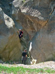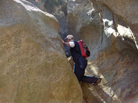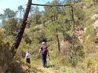 Pasada la Fuente el Río, donde por cierto, nos echamos un traguico de agua recién nacida, nos adentramos en el Término de Torralba para, un poco más adelante, abandonar la pista forestal y adentrarnos por una senda a nuestra izquierda, donde a través de caminos y barranco disfrutamos del buen caminar y de todo aquello que la naturaleza tuvo a bien poner al alcance de nuestros ojos para debatir, más con la imaginación que con la documentación, sobre los orígenes y las causas de cada asunto, léase pozos secos, acantilados verticales o sillas viejas.